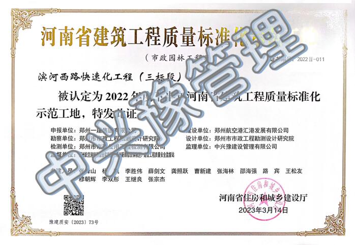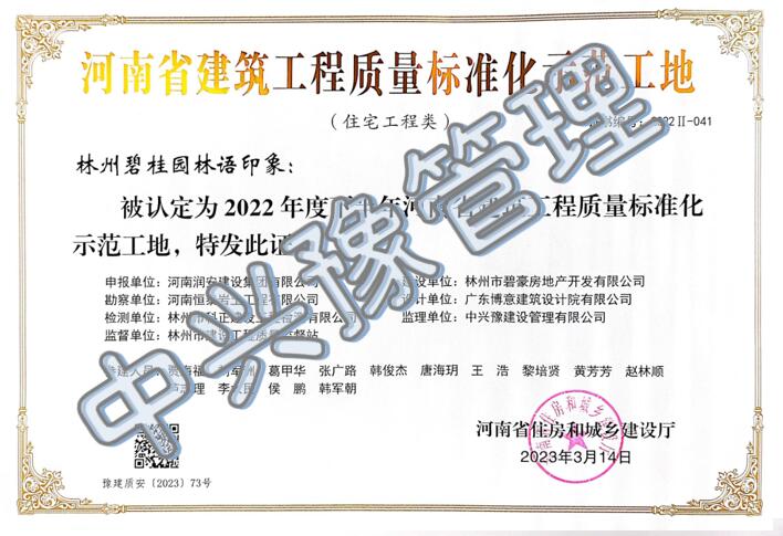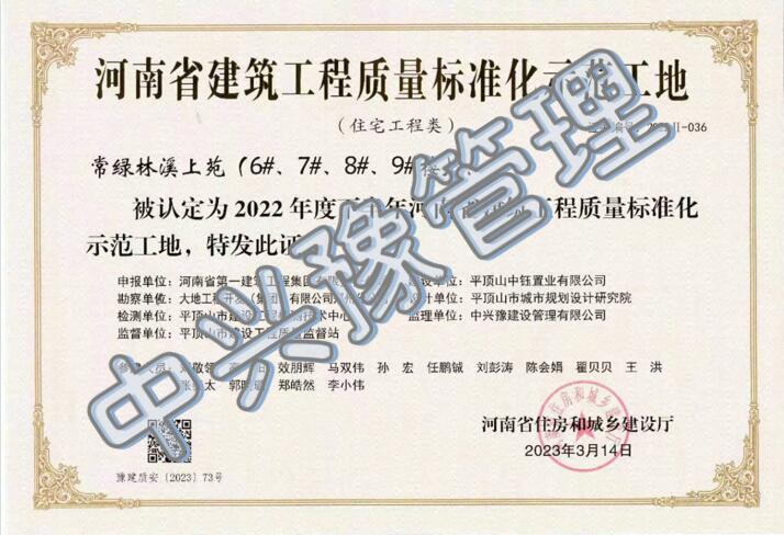 近日,我公司監(jiān)理的常綠林溪上苑(6#樓、7#樓、8#樓、9#樓)項目榮獲“2022年度下半年河南省建筑工程質量標準化示范工地”及“河南省優(yōu)質結構工程”榮譽稱號;林州碧桂園林語印象項目榮獲“2022年度下半年河南省建筑工程質量標準化示范工地”榮譽稱號;濱河西路快速化工程(三標段)項目榮獲“2022年度下半年河南省建筑工程質量標準化示范工地”榮譽稱號。
