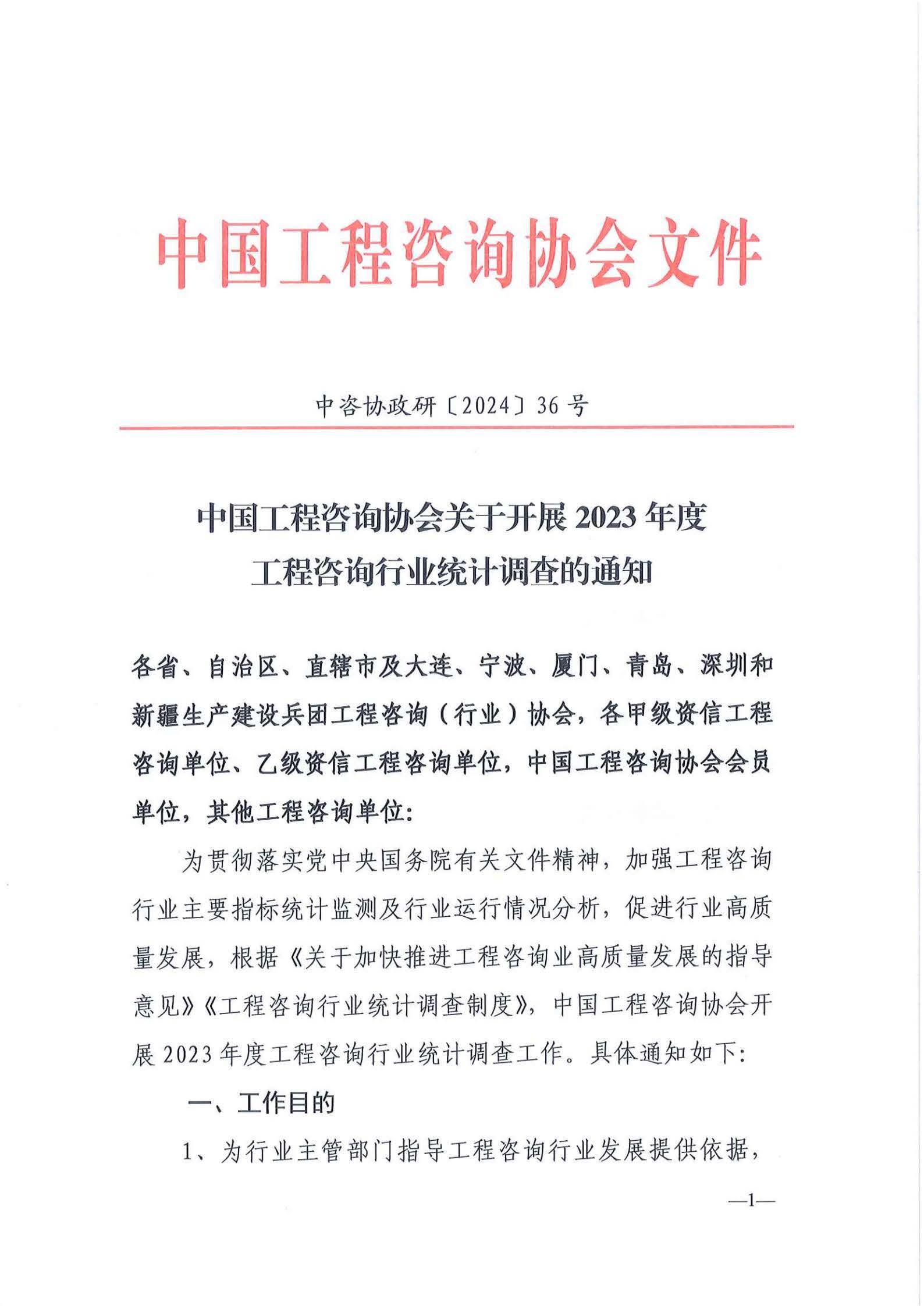 中國(guó)工程咨詢協(xié)會(huì)關(guān)于開展2023年度工程咨詢行業(yè)統(tǒng)計(jì)調(diào)查的通知