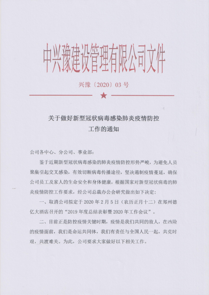 關于做好新型冠狀病毒感染肺炎疫情防控工作的通知