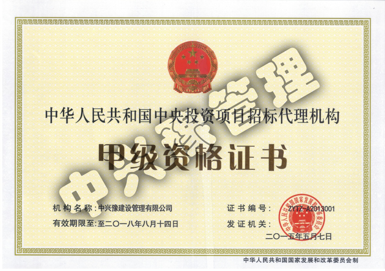 甲級(jí)中央投資項(xiàng)目招標(biāo)代理-公司資質(zhì)