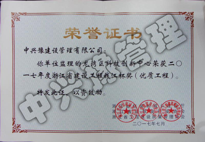 2017年浙江省錢江杯優(yōu)質(zhì)工程-獲獎項目