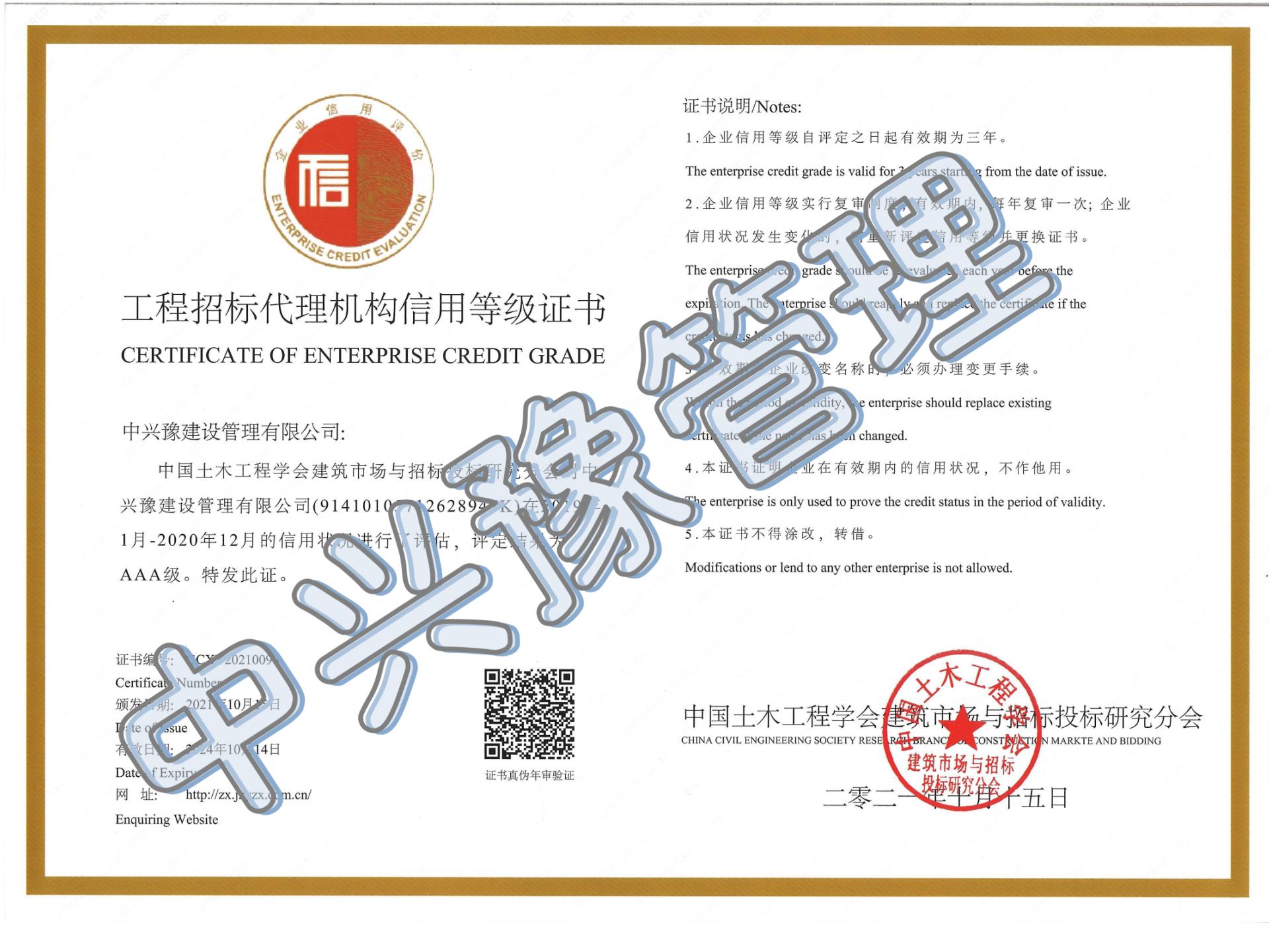 招標(biāo)代理機(jī)構(gòu)信用評價(jià)AAA證書-公司榮譽(yù)