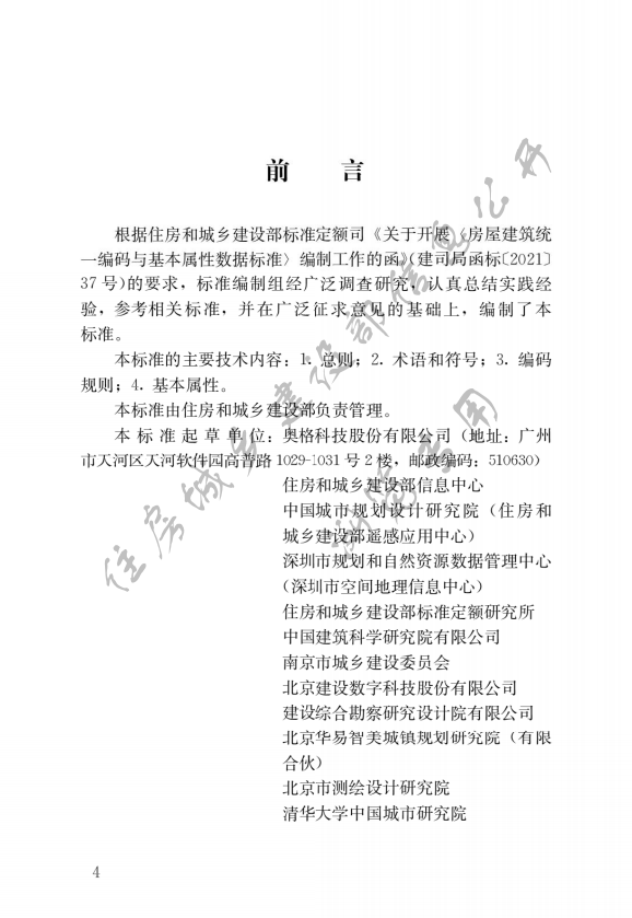 《標(biāo)準(zhǔn)》主要包括總則、術(shù)語和符號(hào)、編碼規(guī)則、基本屬性4項(xiàng)技術(shù)內(nèi)容,適用于房屋建筑編碼、基本屬性采集、數(shù)據(jù)處理和信息共享應(yīng)用,不適用于構(gòu)筑物。