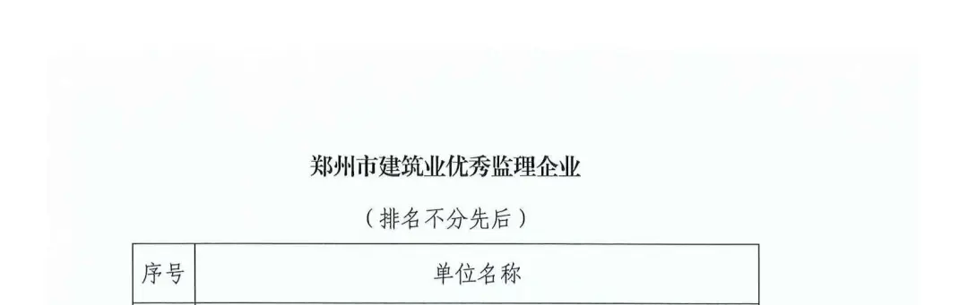 近日,鄭州市建筑業(yè)協(xié)會(huì)發(fā)布關(guān)于2024年度鄭州市建筑業(yè)企業(yè)及個(gè)人考核結(jié)果的公示。其中,中興豫建設(shè)管理有限公司榮幸入選“鄭州市建筑業(yè)優(yōu)秀監(jiān)理企業(yè)”、“鄭州市建筑業(yè)優(yōu)秀招標(biāo)代理企業(yè)”。
