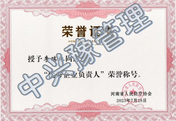 近日,河南省人民防空協(xié)會公布了“關于優(yōu)秀會員單位及個人結(jié)果的公告”。經(jīng)單位申請、專家評估、社會公示等程序,我公司榮獲優(yōu)秀會員單位榮譽稱號,總裁李瑞林榮獲優(yōu)秀企業(yè)負責人榮譽稱號。