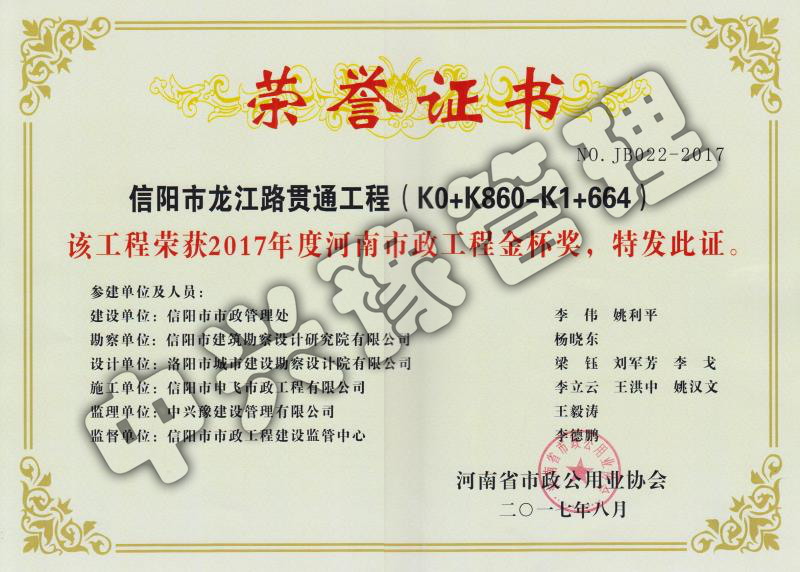 2017年市政工程金杯獎-獲獎項目